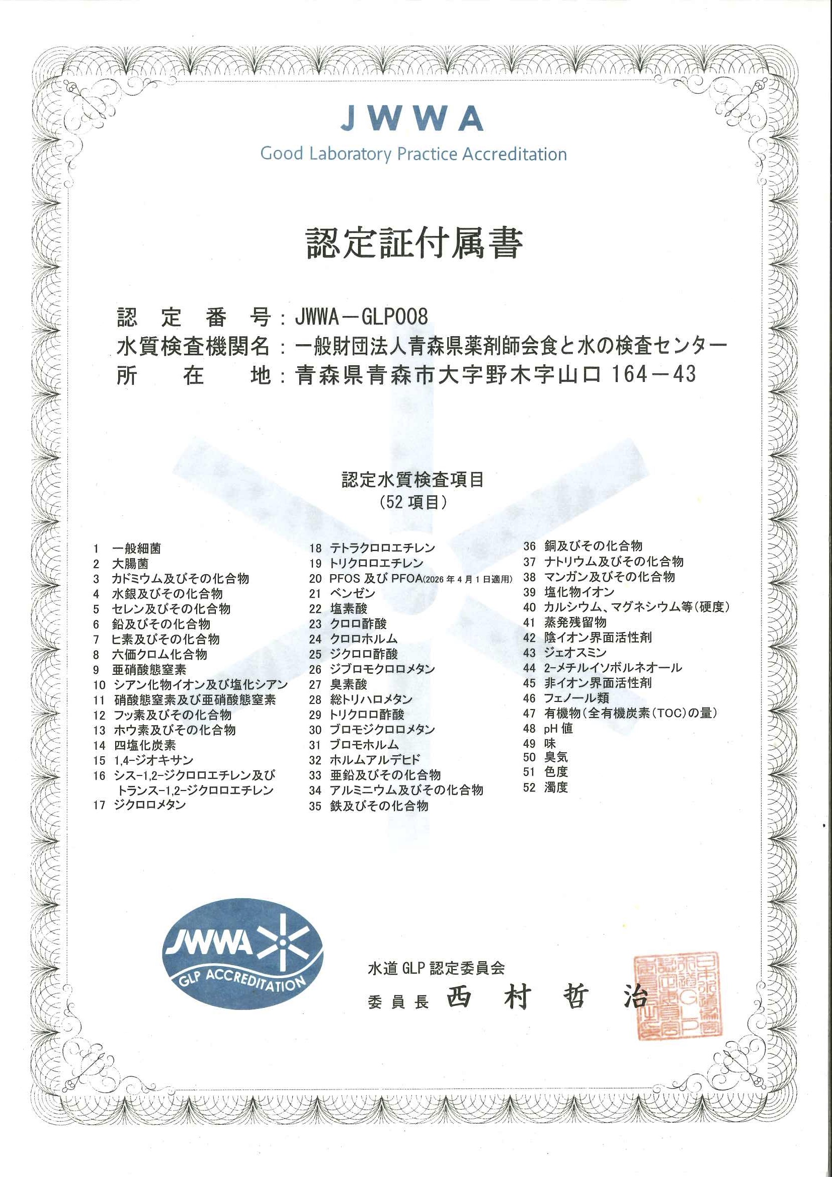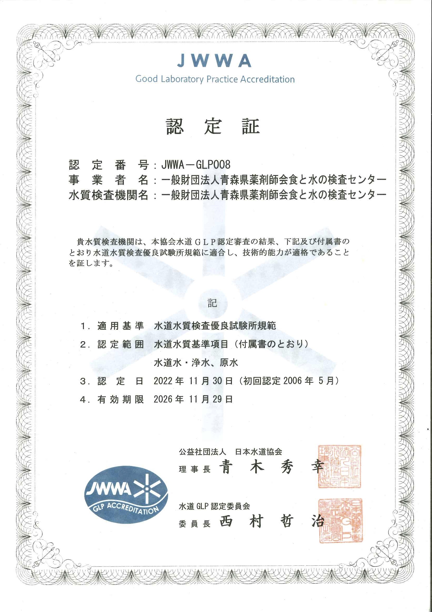 このたび当センターにおきましては、環境省水質検査機関登録及び水道GLP認定への追加が完了しましたのでお知らせいたします。